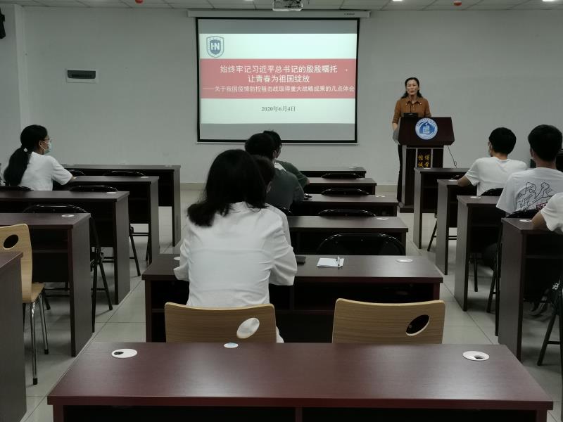 2020年6月4日晚,公司党委常委、组织部长韩淑梅走进课堂,为明升体育2018级食品科学与工程类1班员工讲授了一堂精彩的形势与政策课,分享我国疫情防控阻击战取得重大战略成果的心得体会。